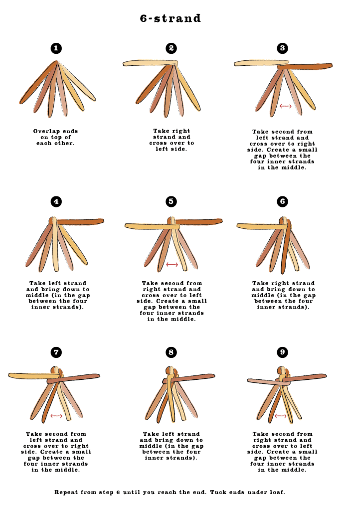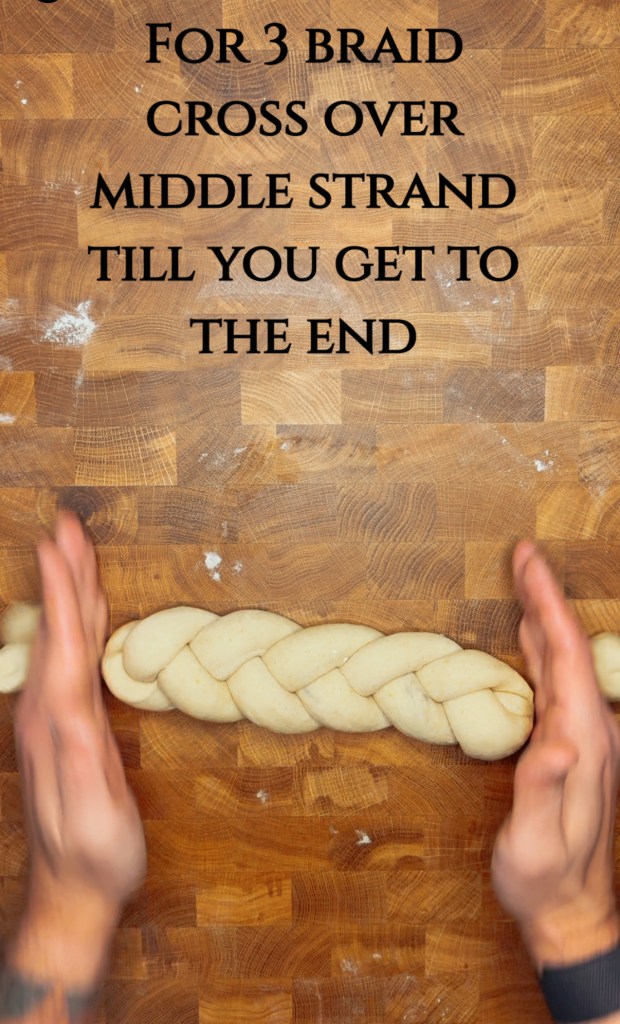 4. Divide dough (if making a 3 strand each piece should weigh 115 grams; if making a 6 strand each piece should weigh 75 grams