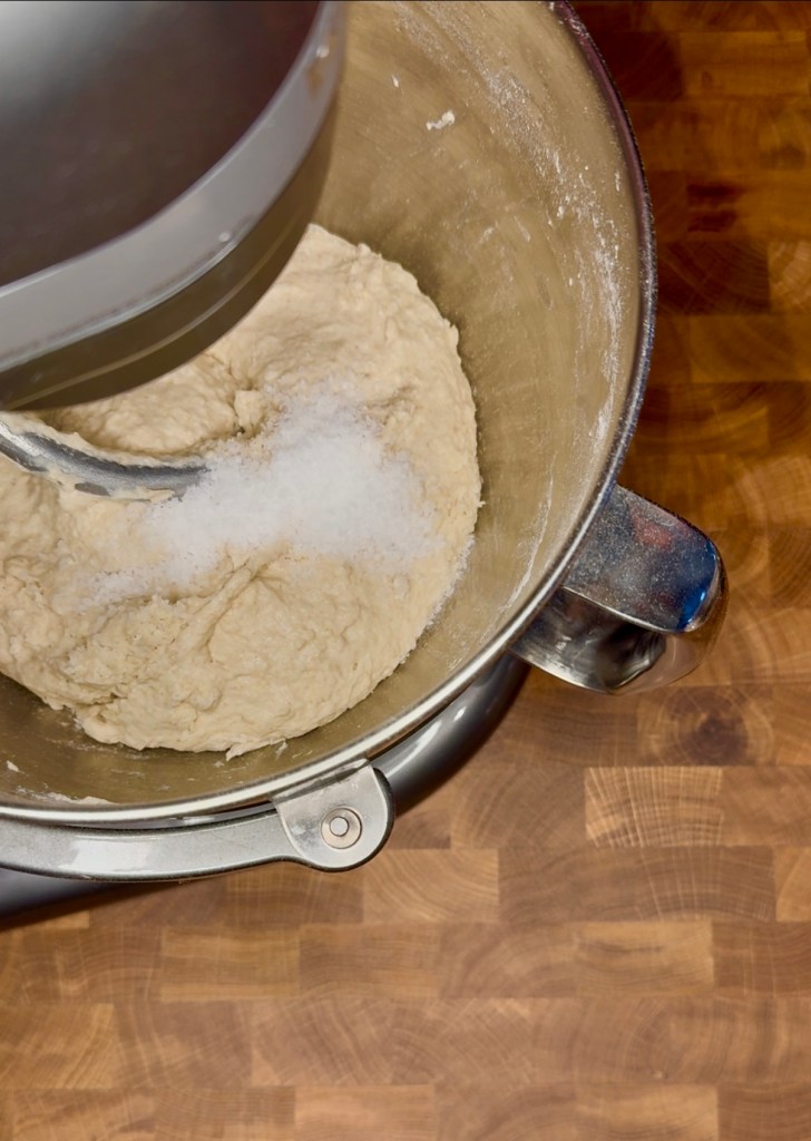 4. Add salt and start mixing again; speed 1 for 2 minutes